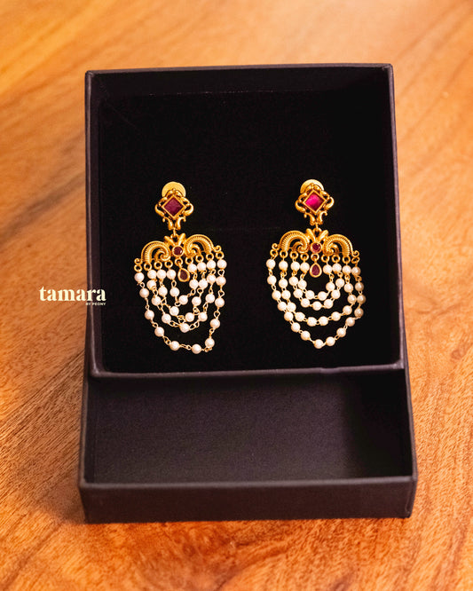 Pearl Chandbali Earring - Ruby Pink